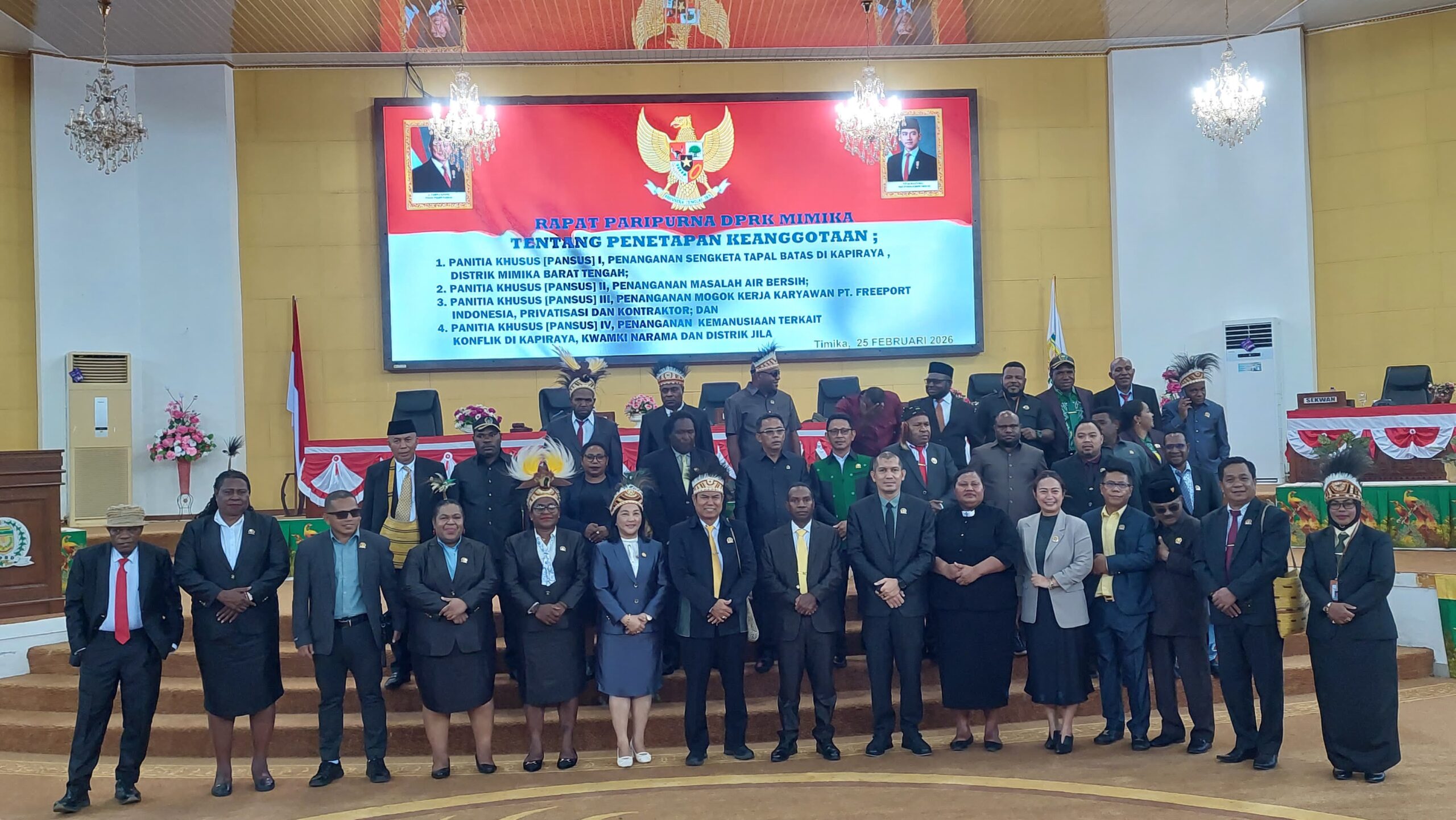 Mimika ( Jurnal Timika ) – Dewan Perwakilan Rakyat Kabupaten (DPRK) Mimika menggelar rapat paripurna penetapan keanggotaan empat Panitia Khusus (Pansus) di Kantor DPRK, Distrik Mimika Baru, Rabu (25/2/2026).