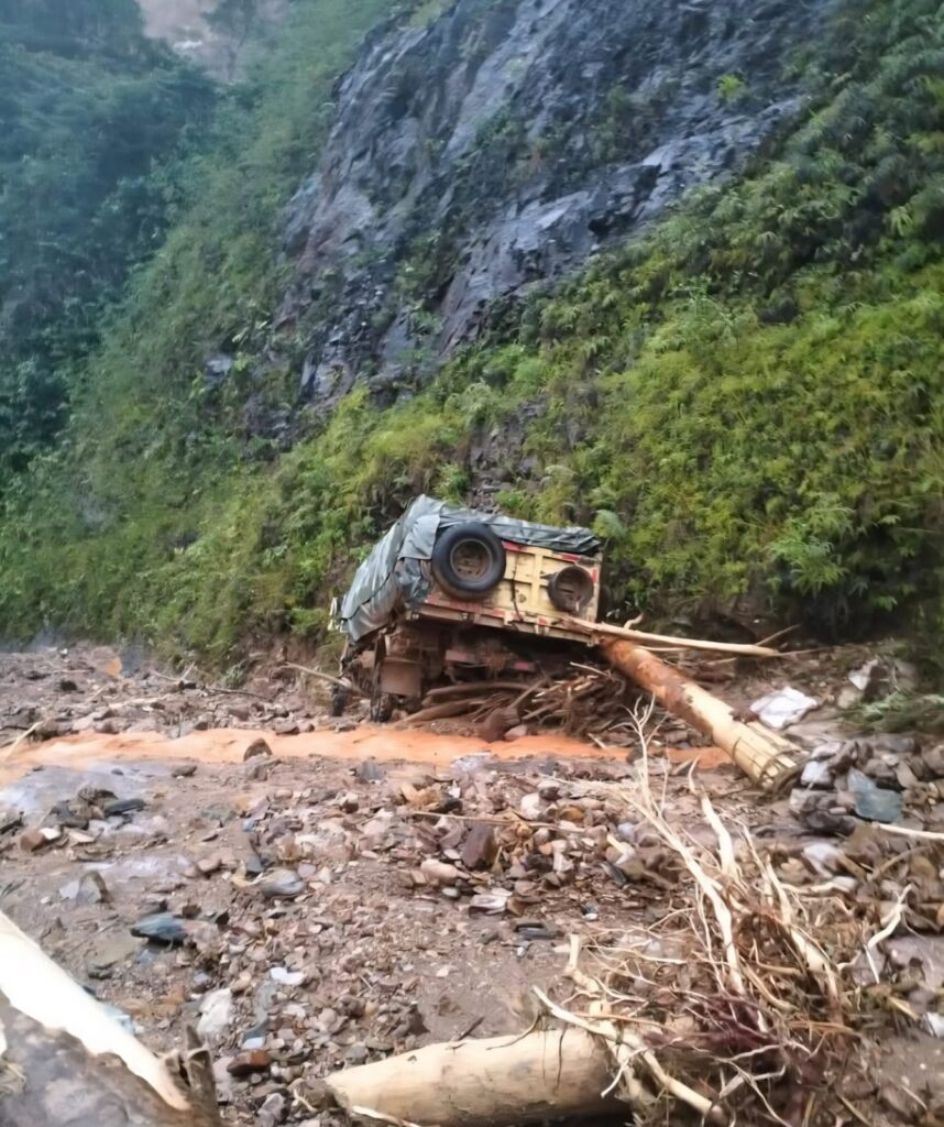 Kendaraan tersebut diketahui dikemudikan oleh Saudara Udin yang saat kejadian sedang memarkirkan kendaraannya di bahu jalan. Saat longsor terjadi, material tanah menyeret kendaraan hingga jatuh ke sungai. Beruntung, pengemudi bersama rekan sopir lainnya berhasil menyelamatkan diri ke tempat aman.
