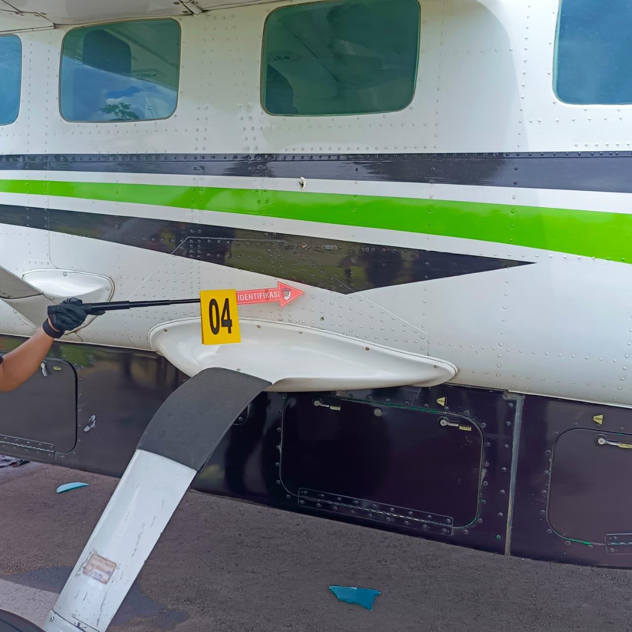“Dari hasil olah TKP, keterangan saksi, dan barang bukti yang ditemukan di lokasi, kami menyimpulkan terdapat 13 lubang bekas proyektil pada badan pesawat,” ungkapnya.