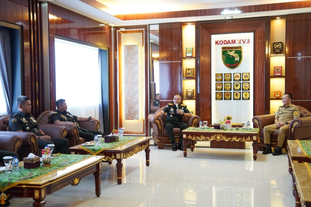 Mimika (Jurnal Timika) – Pangdam XVII/Cenderawasih Mayjen TNI Rudi Puruwito, S.E., M.M menerima menerima kunjungan dari Pejabat Pj. Gubernur Prov. Papua Dr. Drs. H. Agus Fatoni, M.Si beserta rombongan di ruang Cycloop Makodam XVII/Cenderawasih, Rabu (9/7/2025).