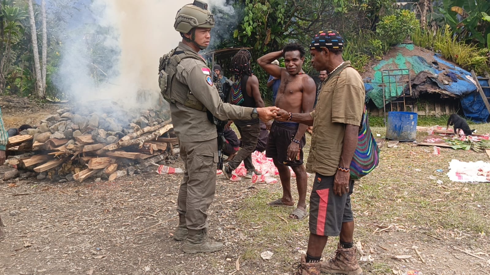 Selain melakukan pemantauan keamanan, personel juga melaksanakan pendekatan dialogis dengan warga setempat. Dalam patroli tersebut, petugas menyempatkan diri berbincang dengan masyarakat yang tengah melaksanakan tradisi bakar batu dalam rangka kegiatan kedukaan.
