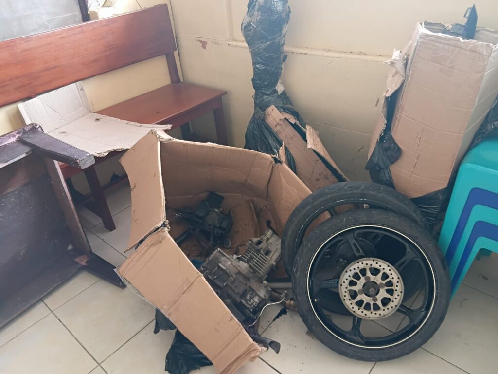 Modus membongkar sepeda motor menjadi komponen terpisah diduga dilakukan untuk menghilangkan identitas kendaraan dan mempermudah pengiriman ke luar daerah tanpa dokumen resmi. Komponen sepeda motor tanpa dokumen resmi (STNK dan BPKB) yang hendak dikirim keluar wilayah berpotensi merupakan hasil tindak pidana pencurian kendaraan bermotor (Curanmor).