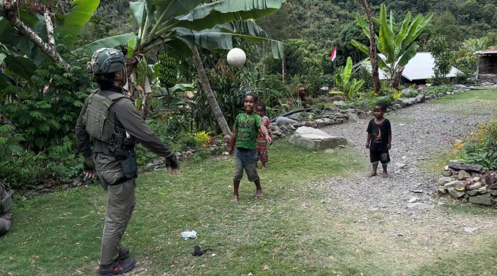 Mimika ( Jurnal Timika ) – Momen hangat dan penuh kebersamaan terlihat pada Senin pukul 09.00 WIT, ketika personel Satgas Operasi Damai Cartenz melaksanakan kegiatan humanis dengan bermain bola bersama anak-anak di Kampung Gurage, Kabupaten Puncak Jaya, Papua.
