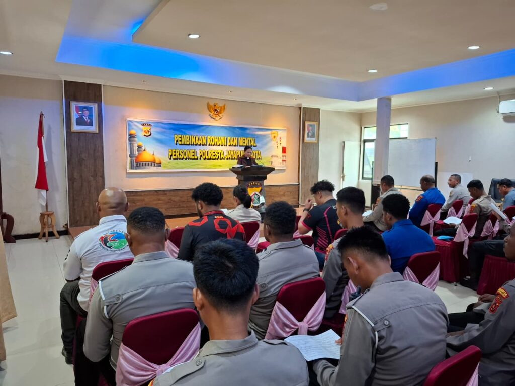 MIMIKA – (Jurnal Timika) Dalam upaya memperkuat karakter dan kepribadian anggota Polri agar senantiasa berpegang pada nilai-nilai moral dan spiritual, Polresta Jayapura Kota menyelenggarakan kegiatan Pembinaan Rohani dan Mental (Binrohtal) pada Kamis (13/11/2025) pagi.
